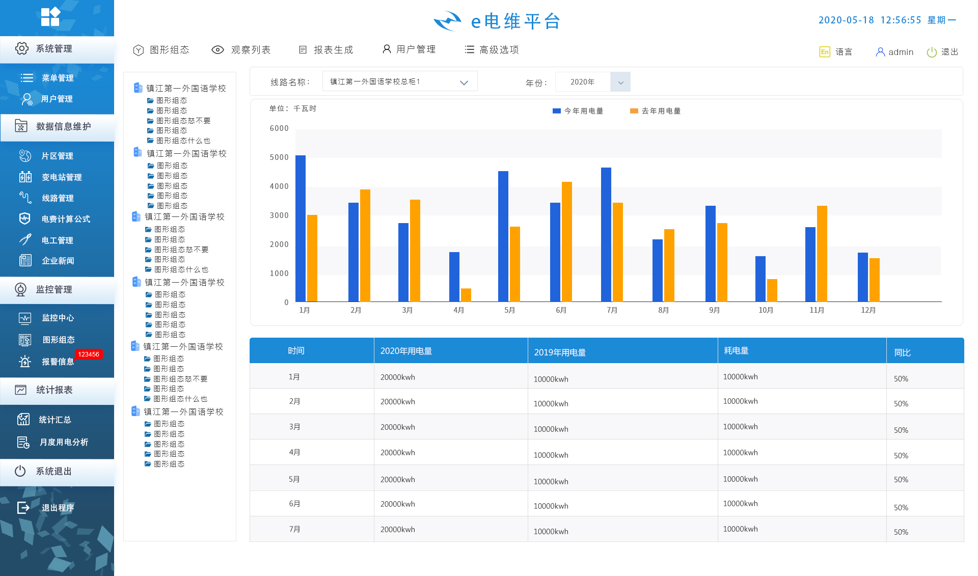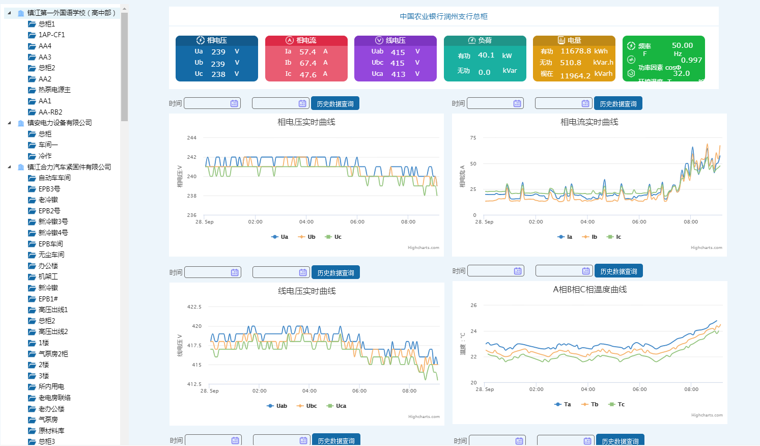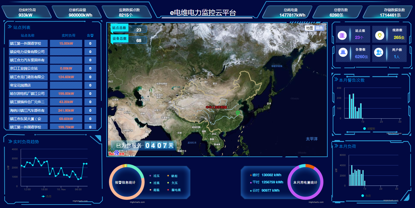监控每条线路的电力参数和实时报警功能,数据和图表相结合,使页面易读易懂易使用
